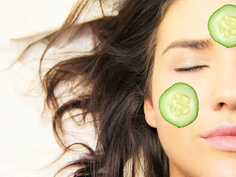 - Нарежете тънки резенчета охладена краставица и я поставете върху областите, засегнати от акне или там където искате да освежите;